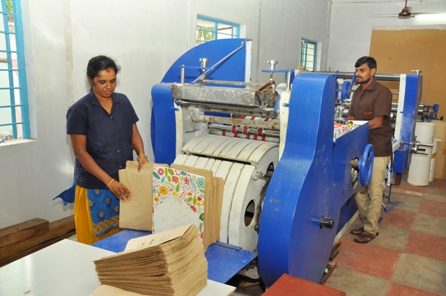 New crystal packagings’ production facility is having 12000 sqft of factory space which includes the warehouse and state of the art machines. We have a separate production capacity to manufacture food grade EVOH bags / multi speciality bags for food industry adhering to BRC standards. The facility is having four production lines. First production line is having a fully automatic sheet to bag machine and it is capable of making 80000 bags per day. Second production line is the rope handle, handle making machine and handle fixing machine for the paper bags. Third production line is the EVOH bag making section ranging close to 3000 sqft. Fourth production line is the line for mass consumption inner paper bags suitable for textiles, pharmacy, grocery and many others . This machine can also make pick up / snack bags and normal paper pouch bags.